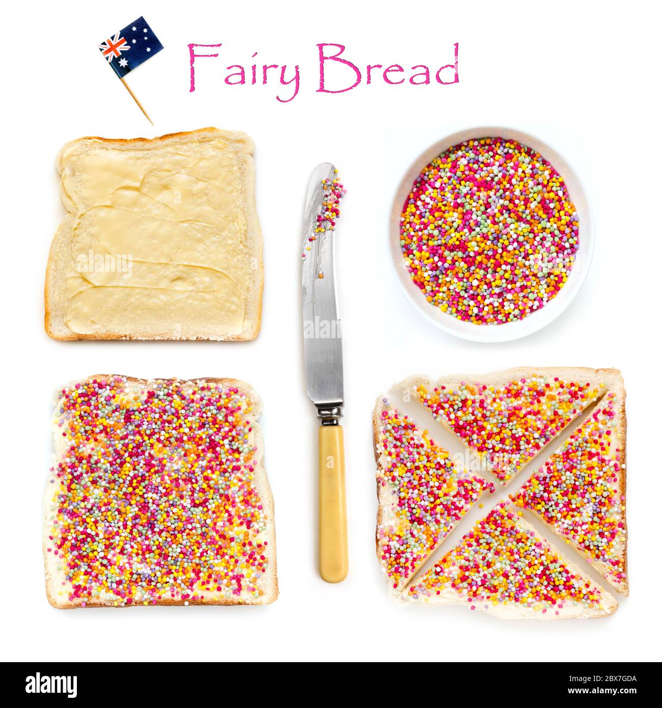 The process of bread making explained in 14 simple steps and their variations how to make bread step by step. Fairy bread is a piece of white bread with margarine or butter and covered with hundreds and thousands (sprinkles).